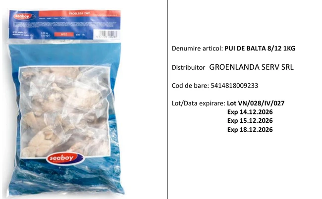 „Vă informăm că am fost notificaţi de către furnizorul GROENLANDA SERV S.R.L să iniţiem retragerea de la comercializare şi de la clienţi a articolului menţionat mai jos”, a transmis Metro Cash & Carry printr-un comunicat publicat de Autoritatea Națională Sanitară Veterinară și pentru Siguranța Alimentelor (ANSVSA).