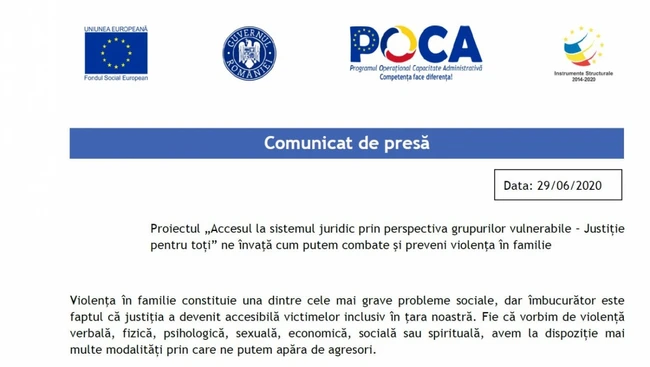 Proiectul „Accesul la sistemul juridic prin perspectiva grupurilor vulnerabile – Justiţie pentru toţi” ne învaţă cum putem combate şi preveni violenţa în familie