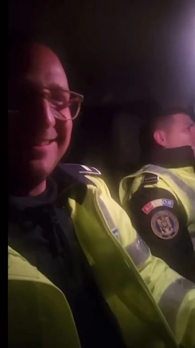 În clipul devenit viral pe rețelele de socializare, unul dintre agenți fredonează pe manele: „Să sară permisele, să vină permisele”.