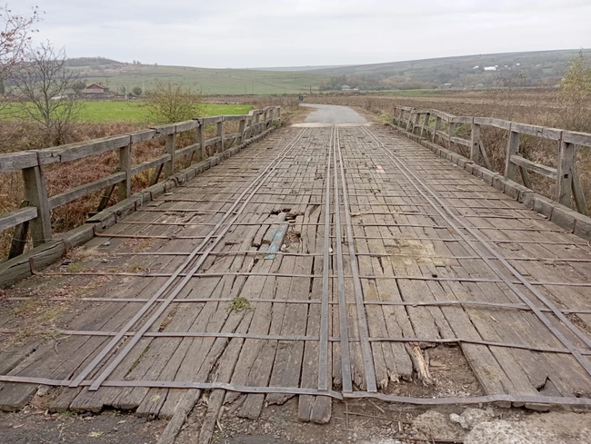 Este mai degrabă o punte de lemn lată de aproximativ trei-patru metri, veche de aproximativ șapte decenii. Ceea ce șochează este însă starea de degradare a acesteia. Grinzile de lemn care formează tăblia podului sunt efectiv putrede, cu porțiuni prăbușite sau găuri prin care se vede fundul amenințător al râpei. Doar chingile de metal fac ca podul să nu se dezintegreze. Acesta scârțâie și efectiv se clatină de fiecare dată când trece un autoturism. Acum aproximativ un deceniu, un tractor s-a prăbușit și un om a murit după ce s-a rupt o balustradă a podului. O comisie întrunită la Prefectură, anul trecut a stabilit ca recomandare închiderea imediată a podului pentru circulației.