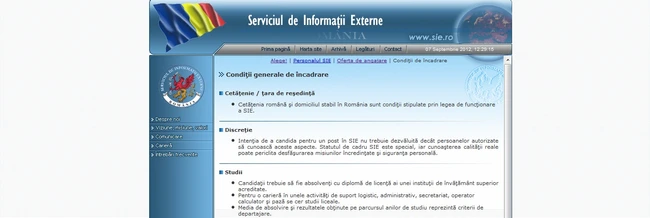 "A fi angajat al SIE înseamnă să-ţi doreşti să fii cel mai bun. De ce să ai doar un un job, când poţi contribui la apărarea intereselor naţiunii tale?", se precizează pe site-ul SIE.