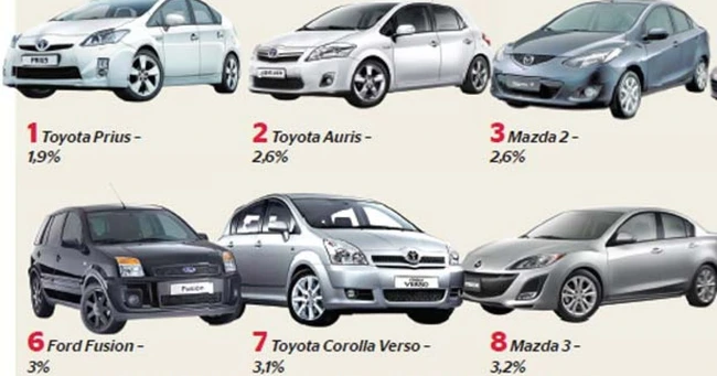 Autoturismele Toyota se regăsesc printre maşinile cu rata cea mai mică de defecţiuni, atât în topul maşinilor cu vechime de 2-3 ani, cât şi în toate celelate calsamente întocmite până la vechimea de 10-11 ani. Honda şi Mazda au şi ele o prezenţă constantă în Top10. Toyota Prius, care se află pe primul loc la categoria 2-3 ani vechime şi pe locul doi la categoria 4-5 ani, este singurul autoturism hibrid din fruntea clasamentului.