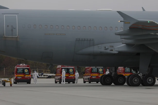 Cei 6 pacienţi au fost transportaţi miercuri cu un avion Airbus al Forţelor Aeriene Germane, care a aterizat la Baza Aeriană 90 şi care este dotat cu echipamente de ultimă generaţie. Cele şase persoane se aflau în stare gravă la secţia Primiri Urgenţe, fiind intubaţi tot acolo din cauză că nu mai există locuri la ATI.