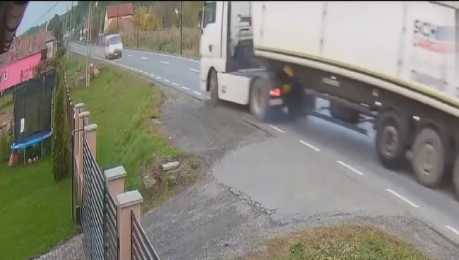 Imaginile distribuite pe grupul de Facebook Radar Iași i-au lăsat fără cuvinte pe internauți. În filmarea surprinsă de camerele de supraveghere se observă cum șoferul unui TIR evită, milimetric, o tragedie de proporții.