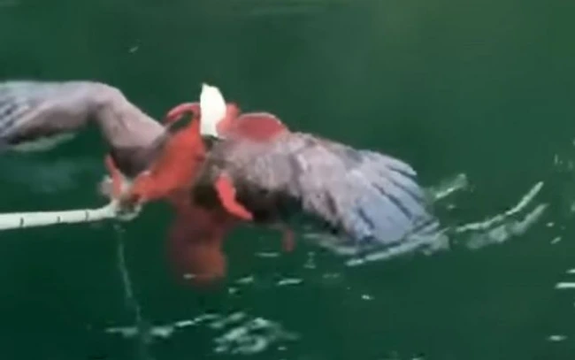 Un vultur prins de o caracatiţă uriaşă a fost salvat în ultima clipă VIDEO