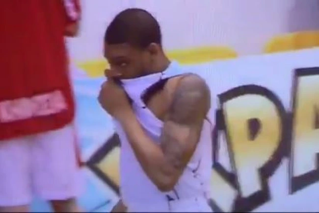Dar în loc să ţină de minge pentru a asigura victoria echipei sale, Marshall, derutat probabil de dispunerea ciudată a echipelor la această fază, a înscris printr-un procedeu simplu în propriul coş şi egalat scorul la 95. După câteva momente de confuzie, baschetbalistul american şi-a realizat greşeala şi şi-a tras ruşinat maioul peste faţă.
