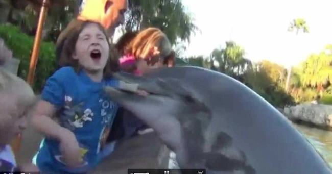 Jillian Thomas, de 8 ani, se juca cu delfinii din parcul acvatic, când a avut parte de o supriză dureroasă. Unul dintre delfini a muşcat-o de mâna stângă în timp ce-l hrănea cu bucăţi de peşte. Din fericire, muşcătura nu a fost adâncă, iar rănile, trei la număr, s-au vindecat relativ repede.