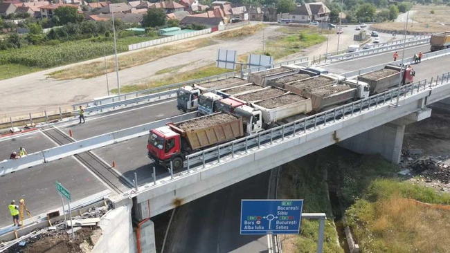 Autostrada A10 închisă pe un fir, în zona Aiud. Sens de circulație blocat patru zile pentru teste la podul peste Mureș