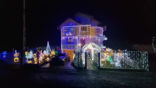 De câţiva ani, casa acestuia a devenit o veritabilă atracţie turistică. Locuinţa luminată poate candida la topul cele mai frumoase case decorate de Crăciun din România.
