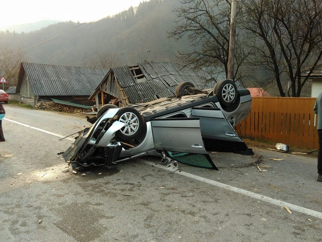 FOTO Accident în Apuseni la 130 de km pe oră. Un tânăr de 25 de ani, la spital cu răni grave după ce s-a răsturnat cu maşina