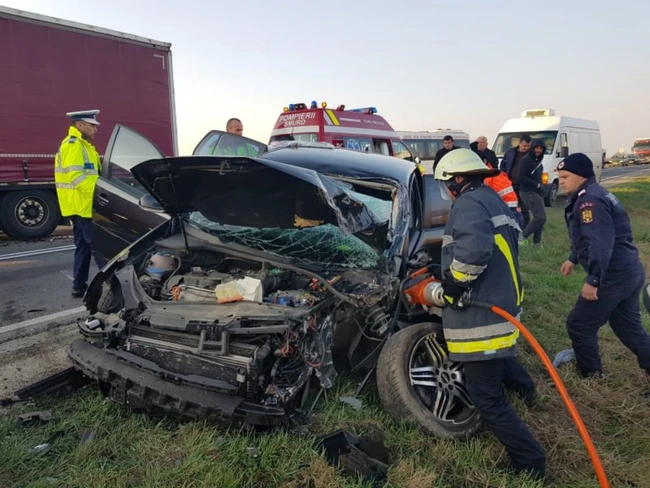 FOTO Accident rutier grav pe DN1, între Sebeş şi Alba Iulia. Ciocnire violentă între un autoturism şi un TIR