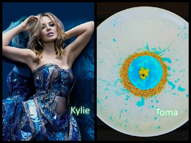 ”La Sia m-a inspirat parul alb şi negru şi am creat un desert de vanilie şi unul de ciocolata. La Lady Gaga mi-au plăcut cerculeţele din jurul capului şi am realizat foie gras cu jeleu de portocale şi galaxie din biscuiţi săraţi. Ascultând Green Day într-o zi mi-am zis că, neapărat, trebuie sa fac ceva verde şi exclusivist şi a ieşit un platou ochi de taur înveliţi in parmezan şi un sos acrişor. Madonna m-a inspirat sa fac o sferă din caramel sărat şi, în interior, un desert cu vanilie şi nuca de cocos. La Kylie Minogue mi-a plăcut pielea şi îmbrăcămintea rezultând un desert ce reprezintă nisipul şi marea”.