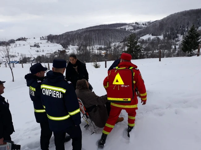 Intervenţia contracronometru a pompierilor a fost dificilă din cauza drumului impracticabil, acoperit pe alocuri cu un strat de zăpadă de peste 50 centimetri. Paramedicii au parcurs pe jos distanţa de aproximativ 3 kilometri până la domiciliul pacientei.