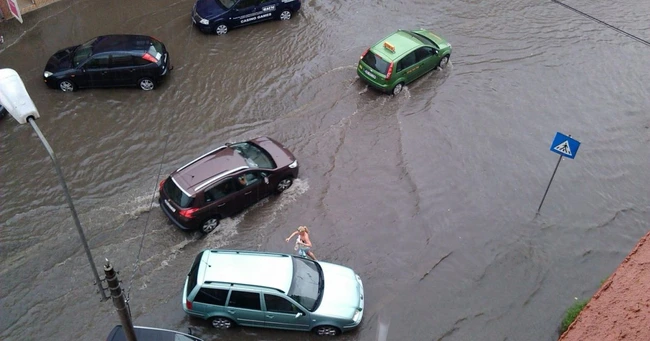 FOTO Inundaţii după furtună la Alba Iulia: străzi şi subsoluri acoperite de apă după o ploaie torenţială