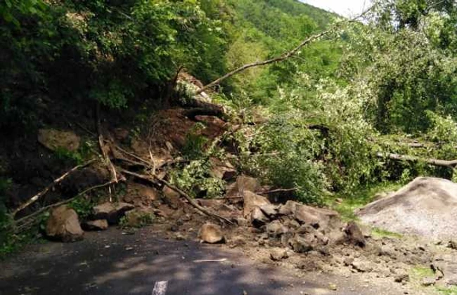 FOTO UPDATE Drumul spre Mănăstirea Râmeţ, blocat peste 5 ore de o alunecare de teren. Circulaţia ar urma să fie închisă peste noapte