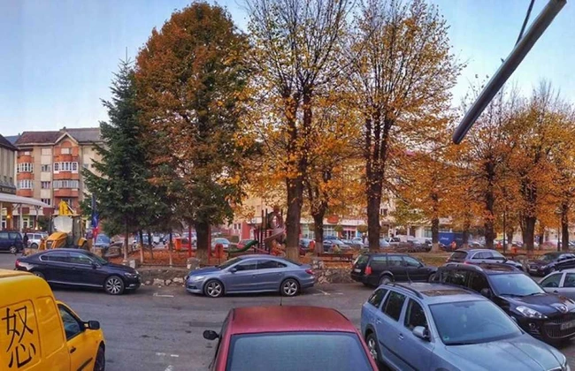 Parcul din Câmpeni, înainte de tăierea copacilor