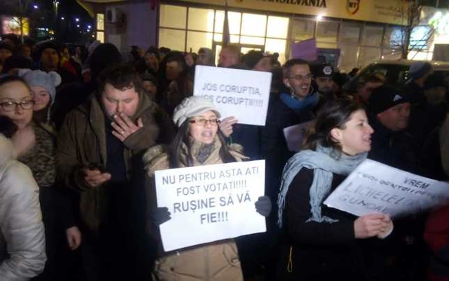 La ora 18.00 nimic nu anunţa ceea cea avea să se întâmple în următoarele ore, mai ales că în ultimele două duminici protestele de la Alba Iulia au fost, mai degrabă, anemice. Aprobarea ordonanţei de către Guvern a trezit spiritul civic şi printre oamenii din aici. În maxim 30 de minute, în faţa Prefecturii Alba s-au adunat peste 1.500 de oameni. Veneau valuri, ”înarmaţi” cu pancarte pe care au scris ceea ce au simţit ei că trebuie să exprime împotriva Guvernului.