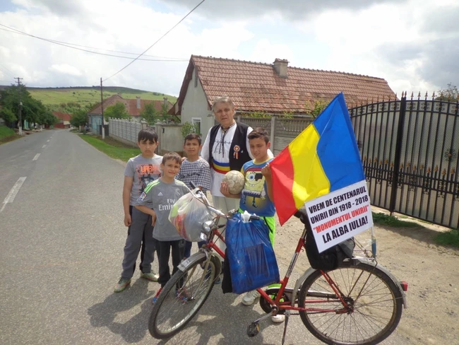 „Ideea mi-a venit încă din toamnă, pentru că m-am săturat să tot scriu într-un proces verbal, fac parte din nişte asociaţii şi pe ordinea de zi la şedinţe tot timpul unul din puncte este monumentul Marii Uniri. Încă din toamnă am zis hai să ieşim în stradă să ne bage lumea în seamă, să facem monumentul, dacă nu să facem greva foamei”, spune acesta. Bărbatul a parcurs cei peste 300 de kilometri pe o bicicletă veche, motiv pentru care a fost nevoit să ducă cu el şi piese de schimb, în cazul în care „tohanul” ceda, însă acest lucru nu l-a deranjat şi spune că, şi dacă era nevoit să meargă pe jos, nu ar fi zis nu, pentru ca acest monument să se realizeze.
