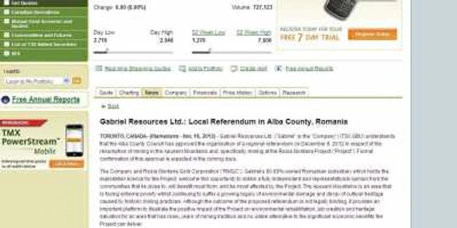 Referendumul pentru Roşia Montană, subiect de dezbatere în Canada. Gabriel Resources a câştigat 3,5 milioane dolari în două zile la bursă