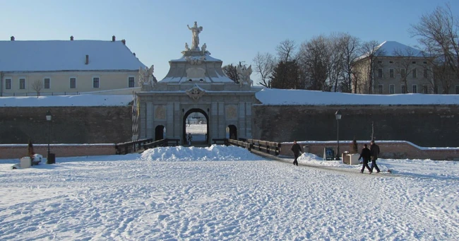 Sculptură în zăpadă în forma Cetăţii Alba Iulia