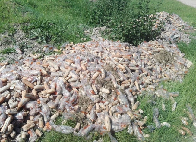 Sute de kilograme de cornuri din programul „Corn şi Lapte”, aruncate pe malul râului Mureş în Alba