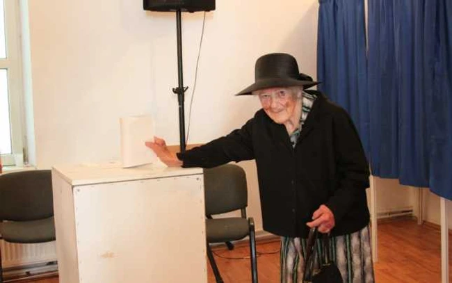 Elisabeta Jordea are 99 de ani şi nu a ratat aproape niciun vot, decât atunci când nu a avut posibilitatea să se deplaseze la secţie. A venit şi duminică 25 mai pentru a pune ştampila pe buletinul de vot, în pătrăţelul unde sunt candidaţii sau candidatul care consideră ca îi reprezintă cel mai bine interesele.
