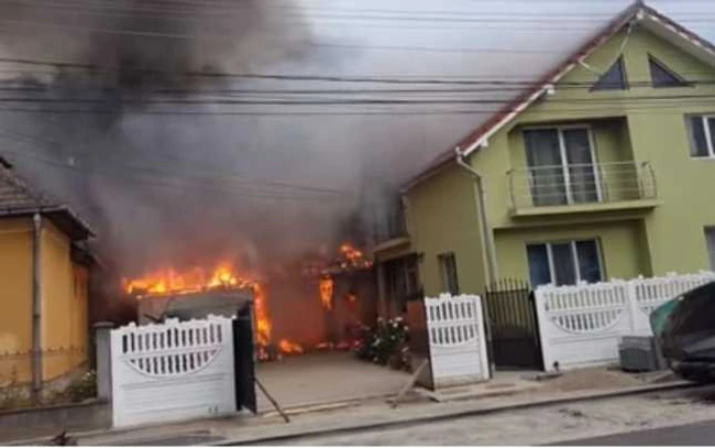 UPDATE 1: Pompierii nu au reuşit, încă, să stingă incendiul produs în jurul orei 13.15. Focul s-a extins şi la acoperişul casei învecinate pe o suprafaţă de 50 de metri pătraţi.