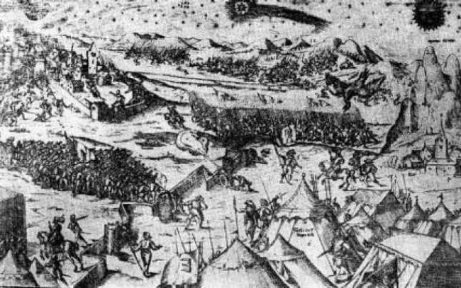 O altă apariţie de tip OZN datează din 18 octombrie 1595, din seara zilei în care oraşul Târgovişte a fost recucerit de turci . Într-un ziar din Tara Transilvaniei se arata că: „În ziua de 15 a lunii octombrie s-a aratat deasupra taberei o mare cometa, care a tinut o ora sau ceva mai mult”. Cometa este amintită şi într-un raport în limba italiană, datat Praga, din 14 noiembrie 1595.O ilustrare a fenomenului apare într-o gravură germană din 1665.