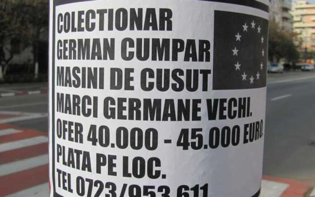 Clientul citeşte anunţul lipit pe stâlp, el având în proprietate o maşină de cusut pe care bineînţeles este tentat să o valorifice la suma avansată de aşa-zisul colecţionar şi telefonează la numărul din anunţ.