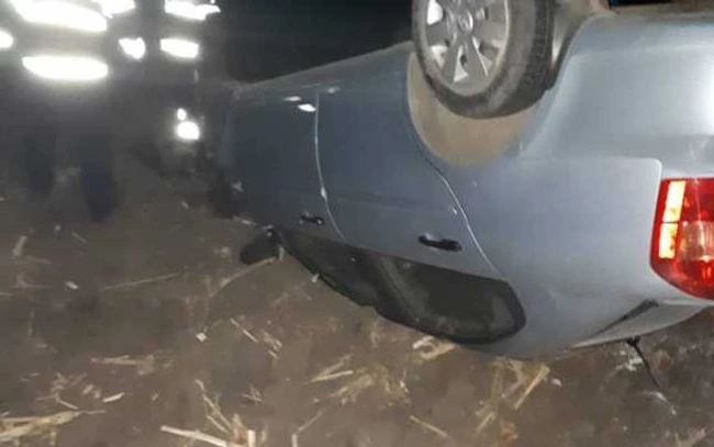 În autovehiculul răsturnat se afla un tânăr de 20 de ani, care a primit primul ajutor şi apoi a refuzat să fie dus la spital.