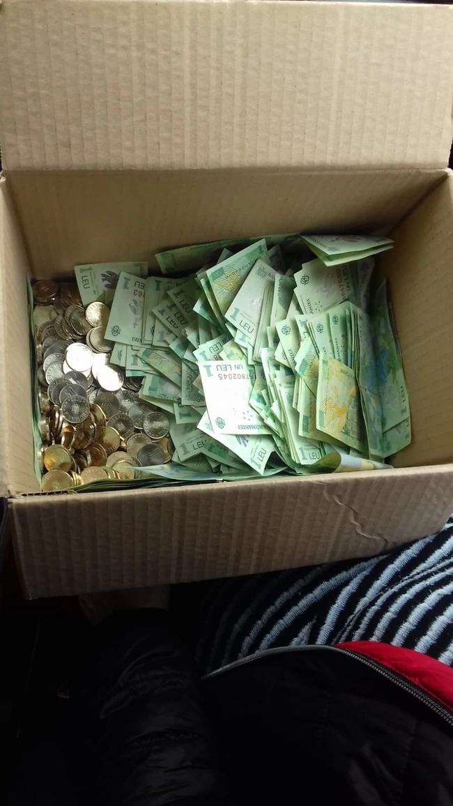 Omul a postat cutia de carton cu banii mărunți pe Facebook alături de un comentariu: