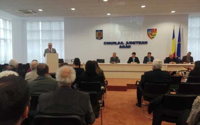 Nu a lipsit nici şedinţa festivă, în cadrul căreia preşedinţii şi vicepreşedinţii instituţiei au primit plachete aniversare pentru contribuţia lor la dezvoltarea judeţului Arad.