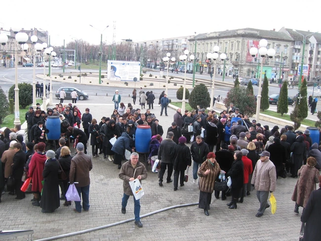 „Am adus patru bidoane, deoarece iau pentru mai multe familii. Nu am stat mai mult de 10 minute la rând”, spune Elvira Catină.