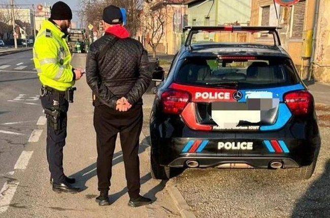 0O fotografie în care apare un polițist arădean și o mașină inscripționată cu POLICE a făcut deliciul internauților. Cel care s-a supărat a fost șoferul care a primit și o amendă.