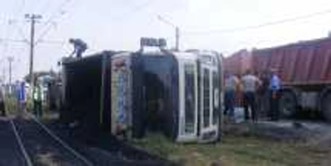 Liniile de tramvai de la Vladimirescu s-au umplut cu asfaltul dintr-un TIR răsturnat
