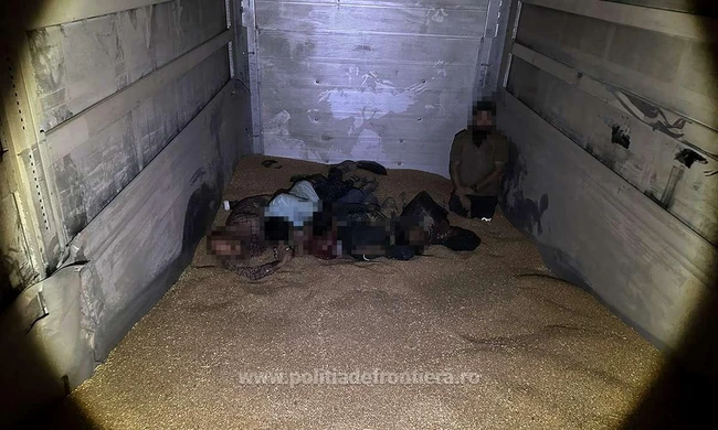 0Șase migranți s-au ascuns într-un camion cu grâu în speranța că vor trece neobservați și vor ajunge într-o țară mai bogată. Este vorba despre bărbați din Pakistan și India, cu vârste cuprinse între 30 și 49 de ani.