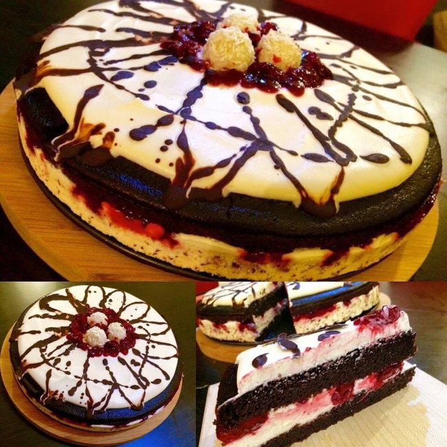 Pentru a sărbători iubirea Alexandra recomandă: Love cake, ornat cu rafaello, topping de ciocolată şi cremă de vişine