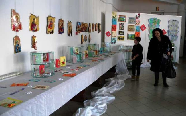 Este vorba despre zeci de icoane pictate pe coajă de copac, tablouri şi felicitări realizate în tehnica quilling (n.r. - formă de artă care implică utilizarea de benzi de hârtie care sunt rulate şi lipite pentru a crea modele decorative) de către deţinuţii Penitenciarului Bacău, dar şi de elevii clasei întâi de la Colegiul Naţional „Ştefan cel Mare”.