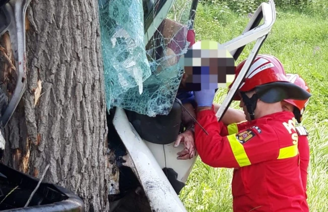 FOTO Accident groaznic în Oneşti. Un şofer a murit după ce a intrat cu maşina în copac