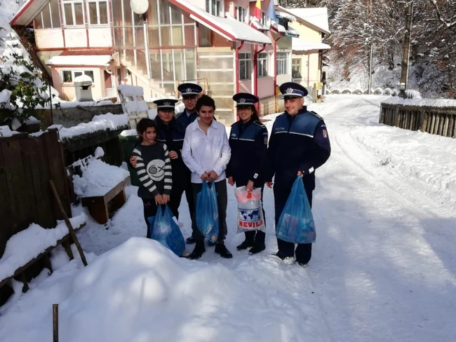 FOTO Poliţiştii din Slănic Moldova, mesagerii lui Moş Crăciun pentru copiii nevoiaşi