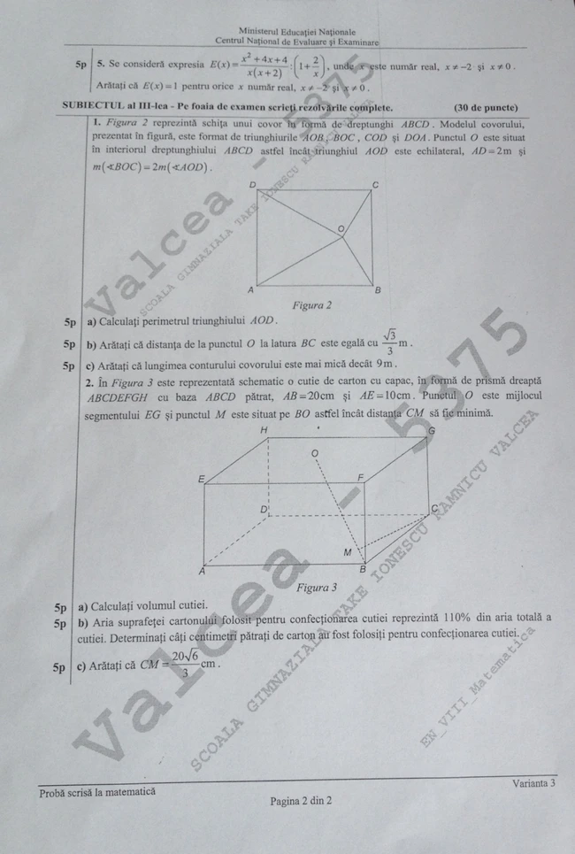 La matematică s-au prezentat 5 328 de elevi , dintre care: 141 au obţinut note între 1 şi 1.99; 359 de elevi, note între 2 şi 2.99; 457 de elevi, note între 3 şi 3.99; 551 de elevi: 4-4.99; 802 elevi au obţinut note între 5 şi 5.99; 771 de elevi, 6 şi 6.99; 783 de elevi: 7-7.99; 737 de elevi: 8-8.99; 589 de elevi: 9-9.99; 138 de elevi au obţinut note de 10.