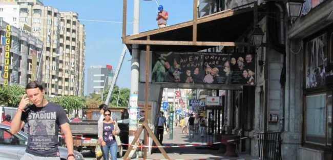 0Conducerea instituției a găsit o soluție pentru ca spectatorilor și trecătorilor să nu le cadă în cap tencuaială de pe fațada hotelului situat deasupra teatrului.