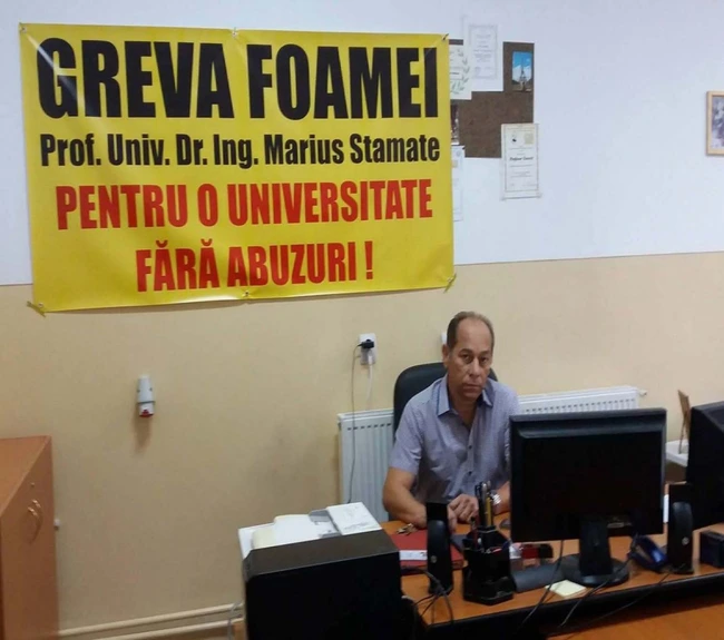 "Ca urmare a înregistrării protestului de greva foamei, pe perioadă nedeterminată, a domnului Prof.univ.ing.dr. Marius Stamate, cu nr. 14448/08.09.2017, comunicăm punctul de vedere al conducerii Universităţii, după cum urmează:
