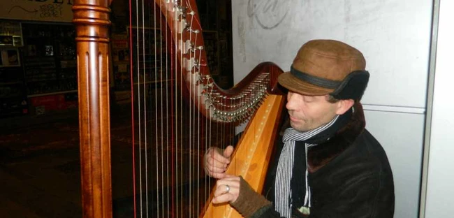 Harpa la care cântă pe străzile Bacăului este una celtică şi valorează aproximativ 1.500 de euro. Susţine că intenţionează să pună în Bacău bazele unei şcoli de muzică pentru copii.