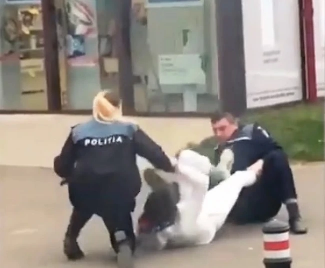 Pe reţelele de socializare circulă un filmuleţ realizat marţi, în municipiul Bacău, în timpul unei intervenţii poliţieneşti. Un echipaj de poliţie format dintr-un bărbat şi o femeie se chinuie să imobilizeze un bărbat care a refuzat să se supună. Scenele i-au amuzat pe oameni, întrucât unul dintre poliţişti cade în disputa cu suspectul, fiind nevoie de intervenţia trecătorilor care au dat o mână de ajutor.