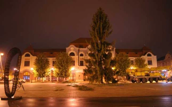 Cel mai mare brad de Crăciun din România, de 32 de metri, a ajuns în Baia Mare