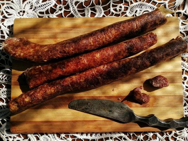 Odată obţinuţi, cârnaţii proaspeţi se aşeaza pe beţe de lemn şi se lasă la zvântat o zi. După zvântare, se pun la afumat în podul casei sau într-o afumătorie amenajată, unde se realizează fum din lemn de esenţă tare timp de 10 zile. După afumare, cârnaţul se pune într-un loc ferit de razele soarelui pentru păstrare şi uscare.
