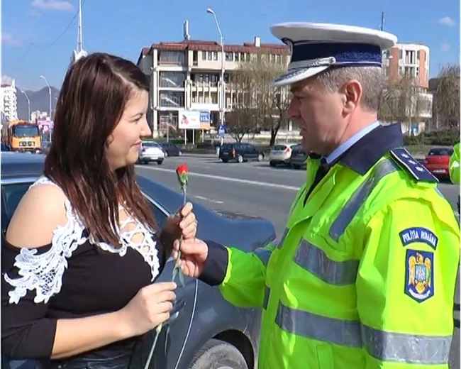 De 8 Martie, poliţiştii au oferit flori şi recomandări şoferiţelor aflate în trafic