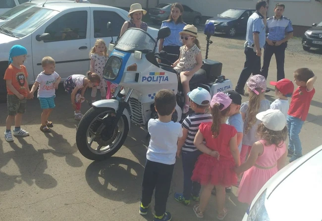 Înainte să guste din tortul pregătit pentru aniversarea ei, Octavia a trecut pe la poliţiştii maramureşeni. De la aceştia, micuţa a învăţat tot ce trebuie să facă pentru siguranţa ei pe drumurile publice, acasă, la locurile de joacă sau în vacanţa care se apropie. După ce au aflat care sunt regulile, sub supravegherea poliţiştilor, Octavia alături de colegii ei de grădiniţă au putut testa motocicleta din dotarea Biroului Rutier Baia Mare.