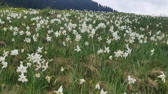 Poiana narciselor, un covor de flori albe așternut la picioarele turiștilor FOTO